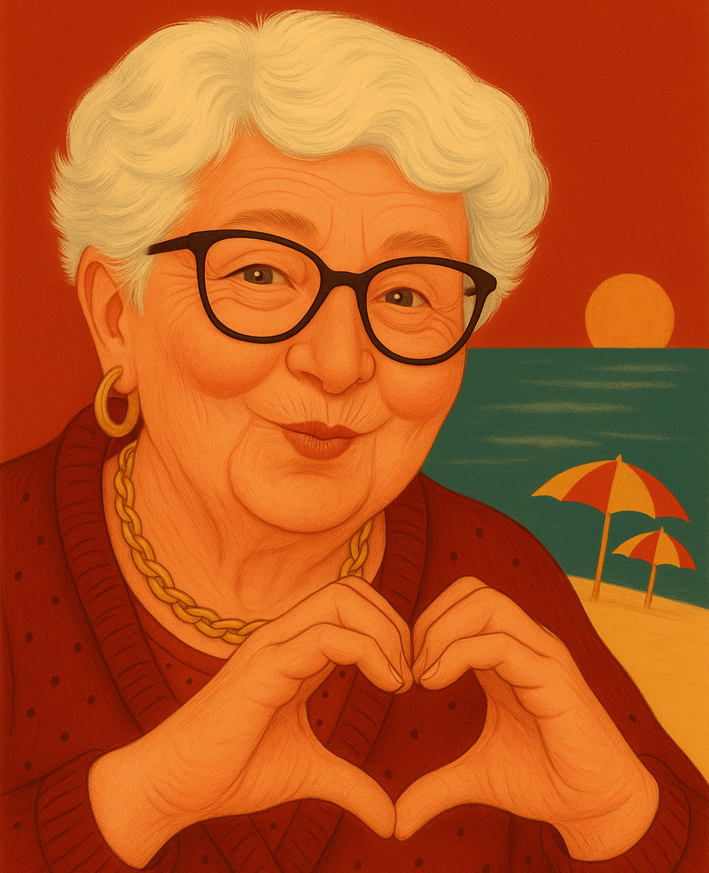 Suzette, qu’on appelle affectueusement La Suze, est une femme élégante et malicieuse. Toujours un bijou au poignet, une astuce au coin des lèvres, et ce petit grain de folie rétro qui illumine les journées.