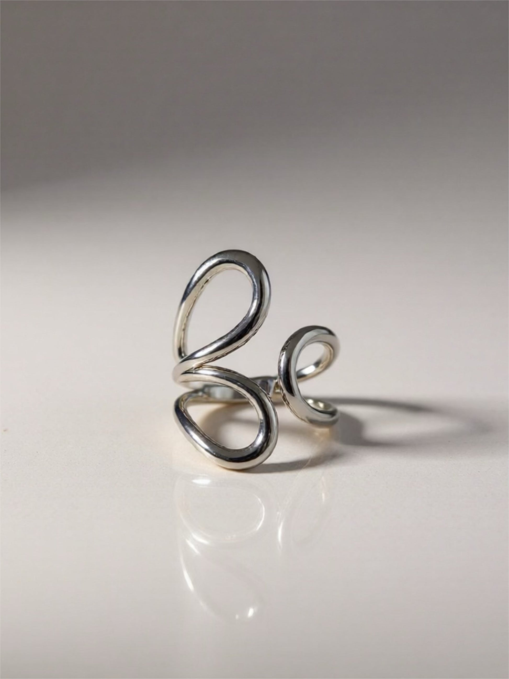 Ses lignes argentées s’entrelacent avec audace et élégance, donnant à cette bague un caractère unique. Une pièce sculpturale qui apporte force et originalité à chaque geste.