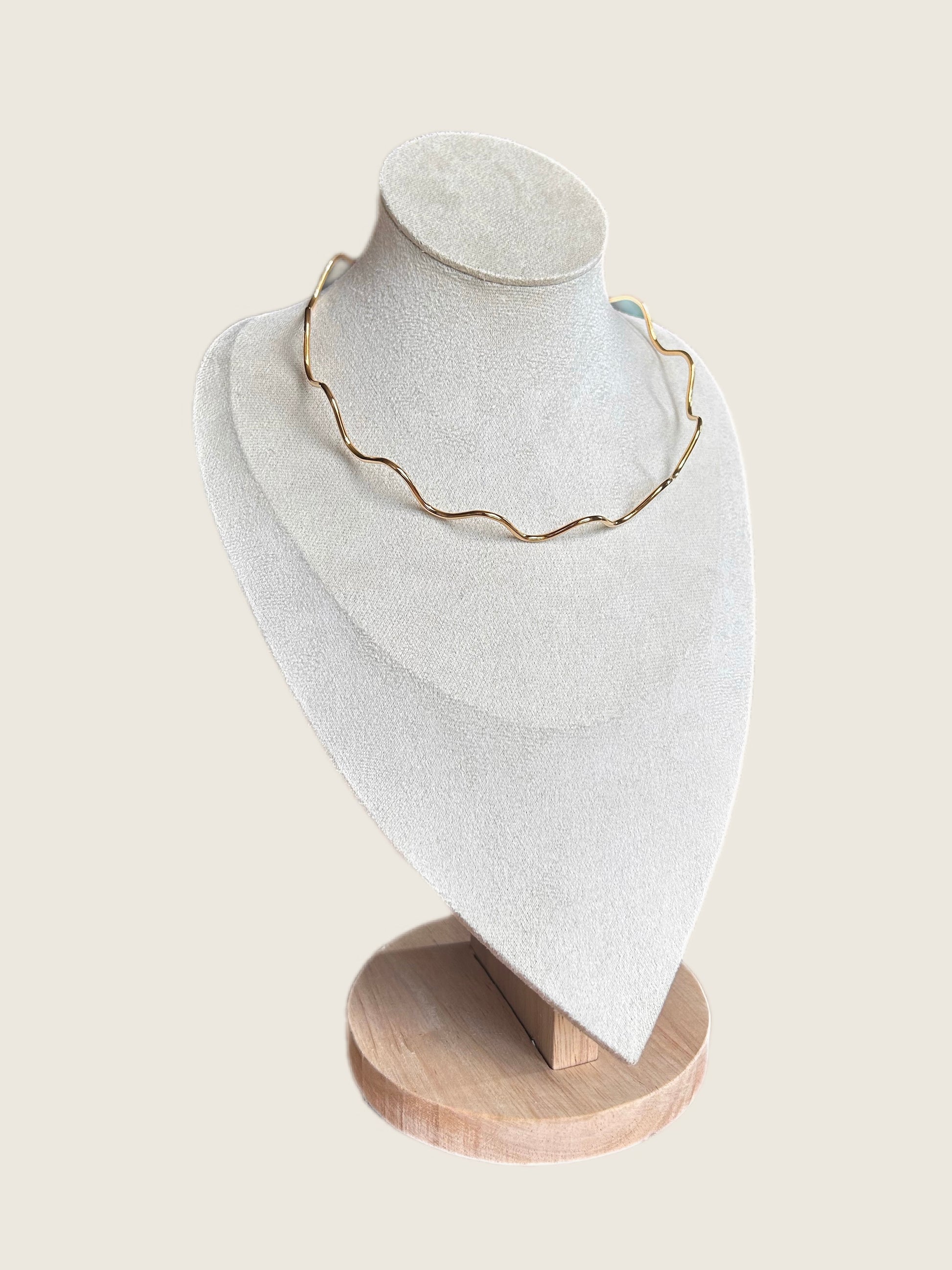 Augusta n’a pas besoin de mots pour exister. Elle entre, et son allure suffit. Son jonc en vague épouse le cou avec majesté, comme une couronne discrète mais imposante.