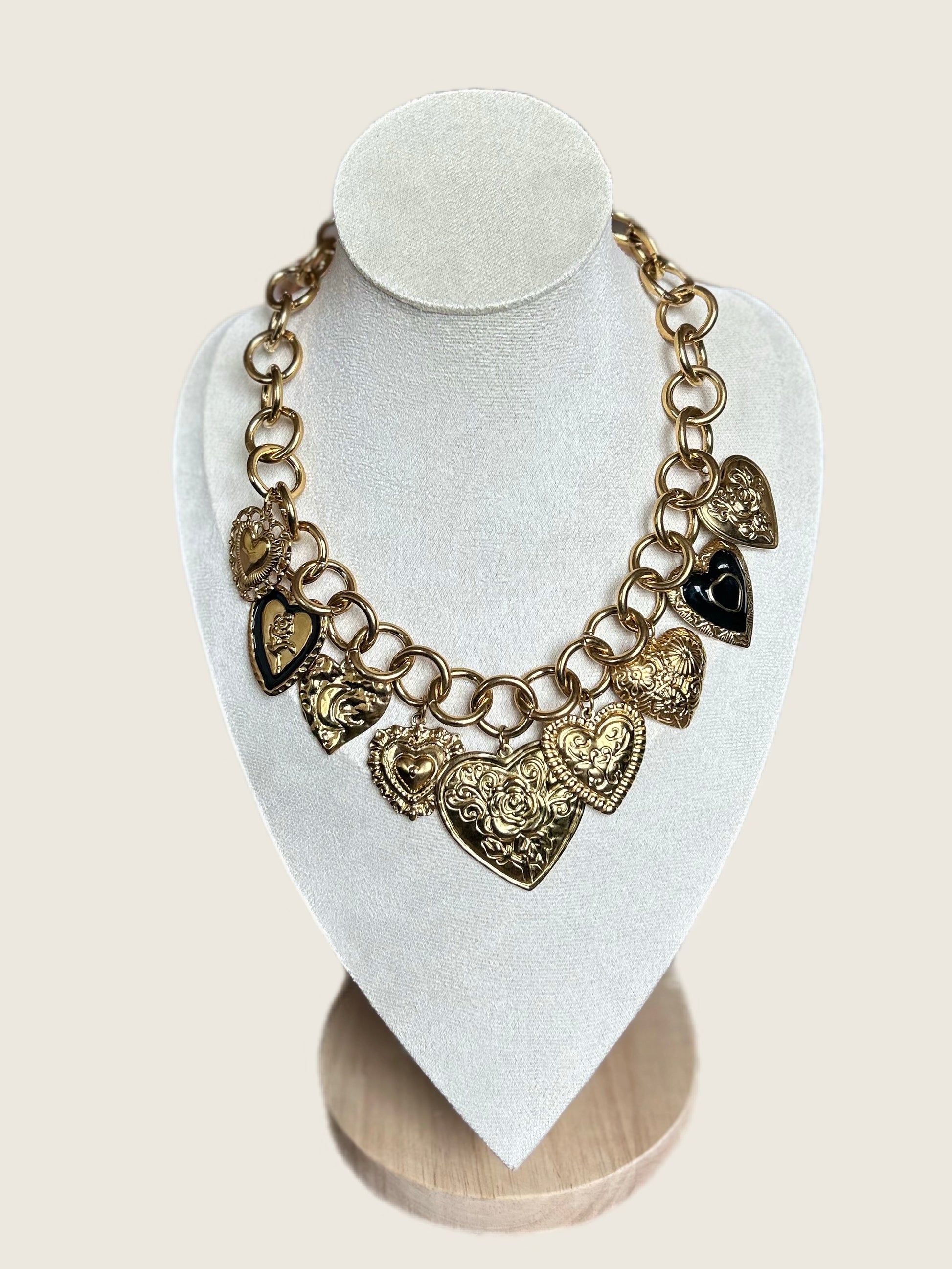 - Collier chaîne dorée avec pendentifs cœurs gravés