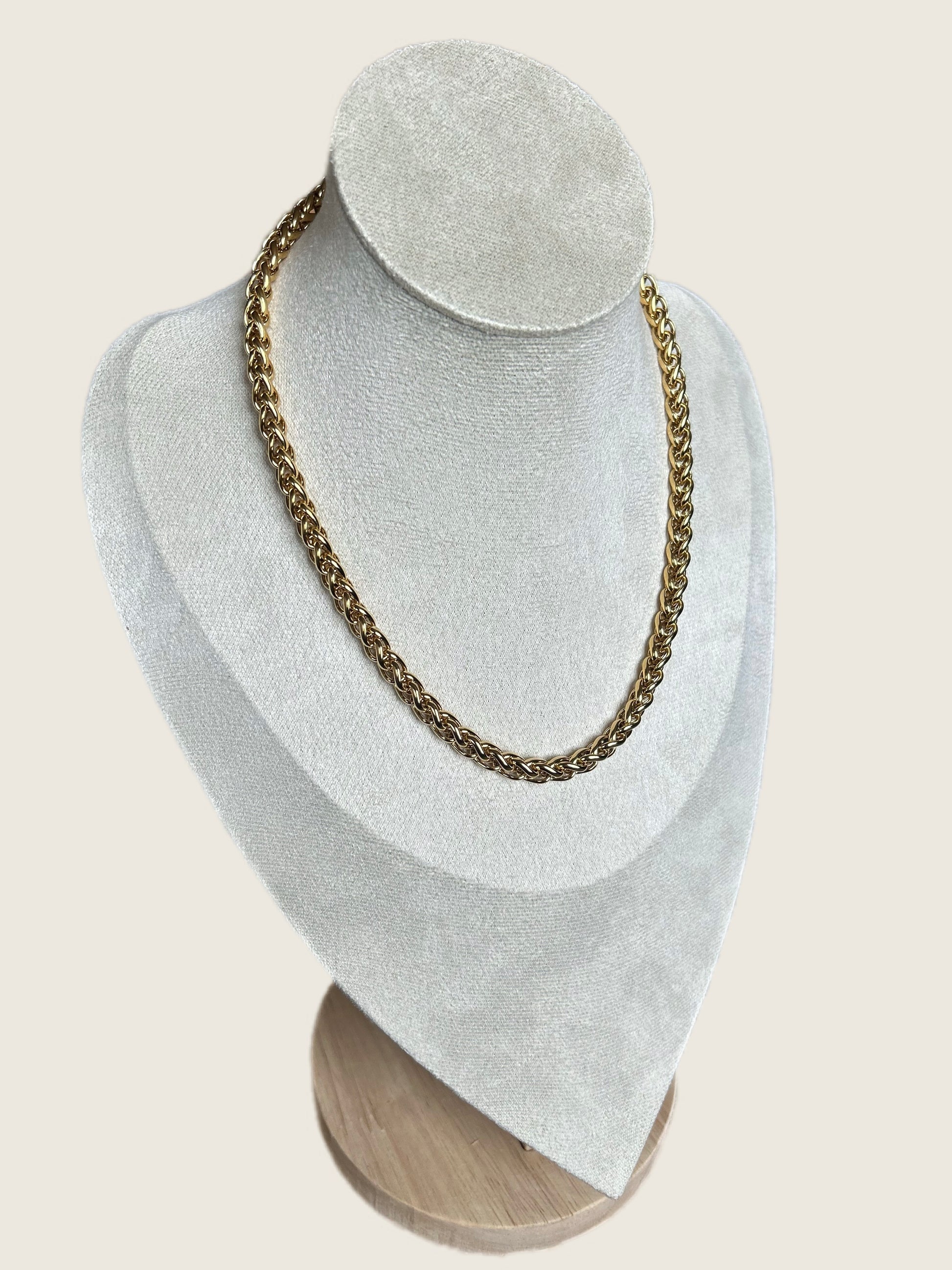 Madeleine n’a pas besoin d’ornements superflus : sa présence suffit. Sa maille torsadée, large et sculptée, épouse le cou avec autorité et élégance. Elle est de ces femmes qu’on remarque par leur port de tête, leur assurance naturelle, et ce mélange rare de force et de chic intemporel.