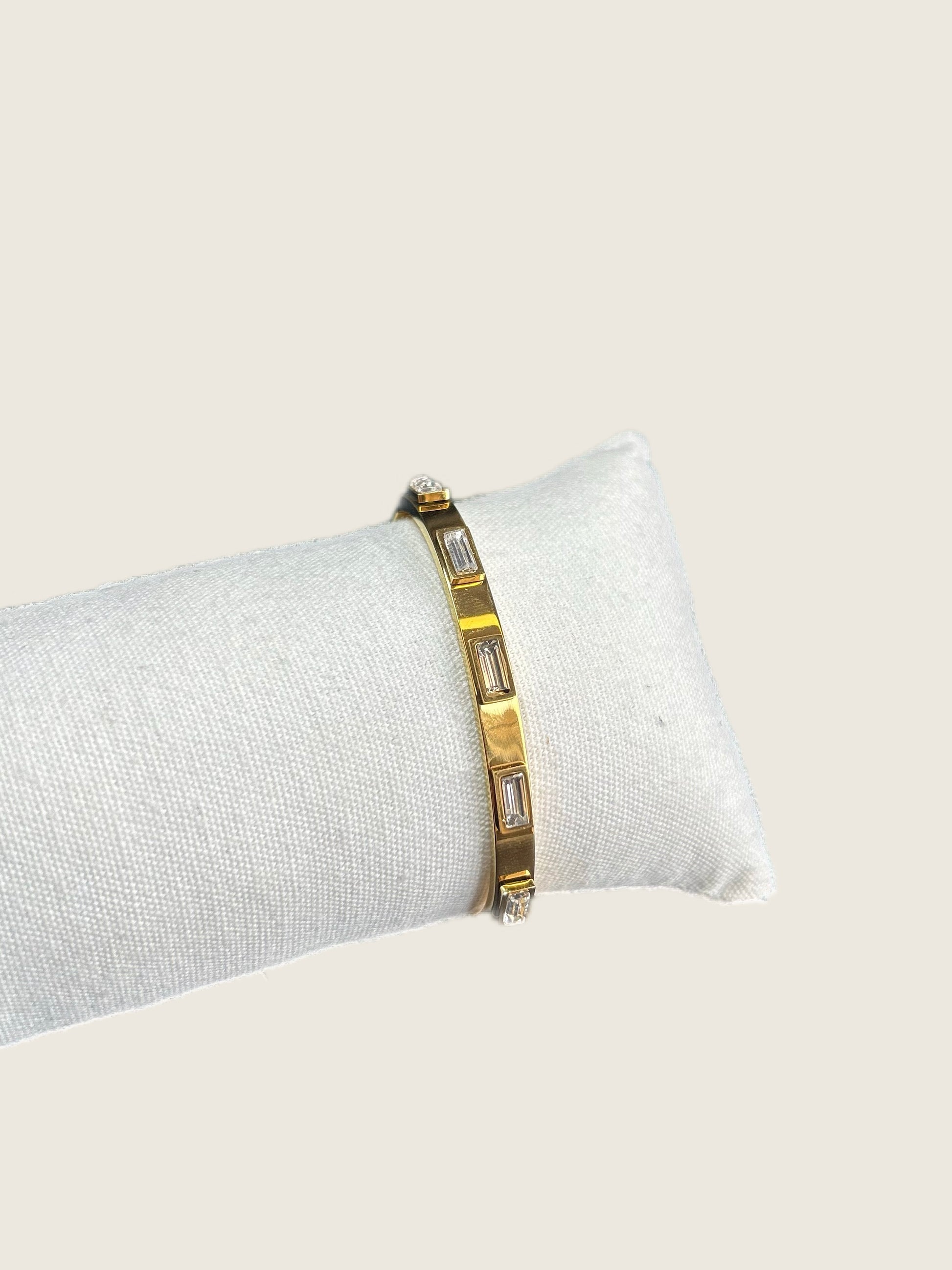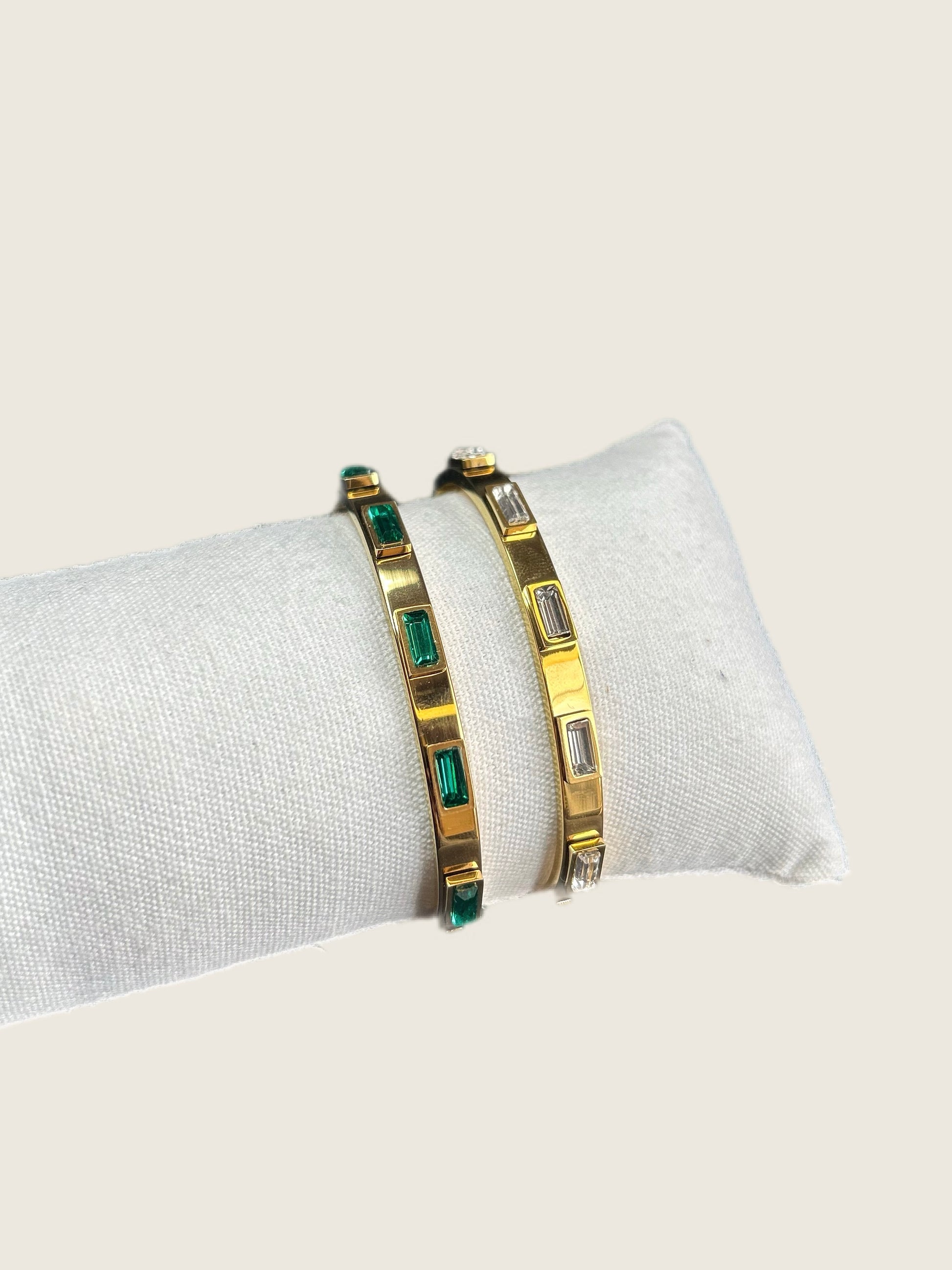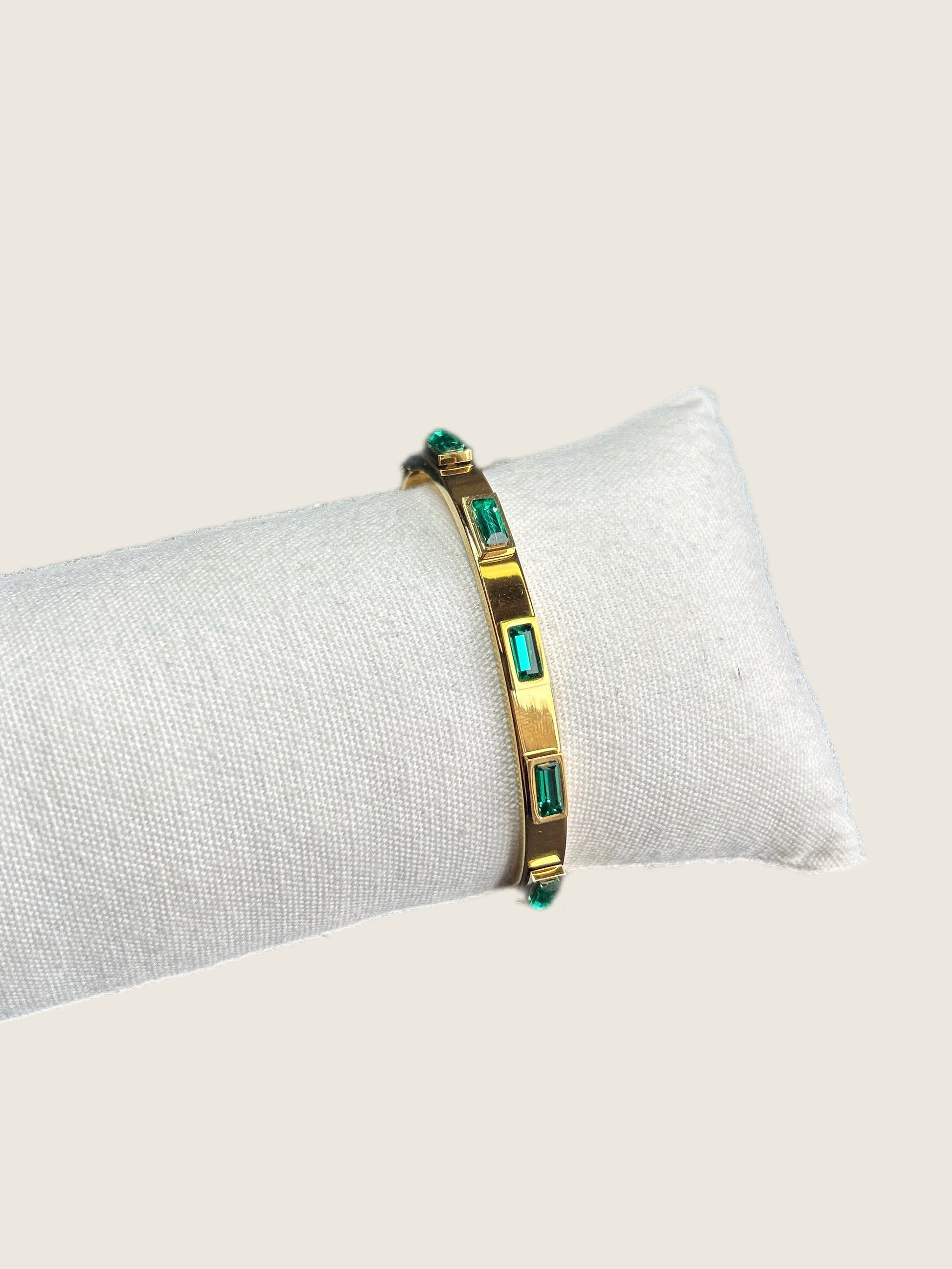 Avec ses éclats de zirconiums verts et blancs, elle capte la lumière et la renvoie avec grâce. Fine et élégante, elle habille le poignet sans ostentation et devient vite ce bijou qu’on porte chaque jour, comme une signature.