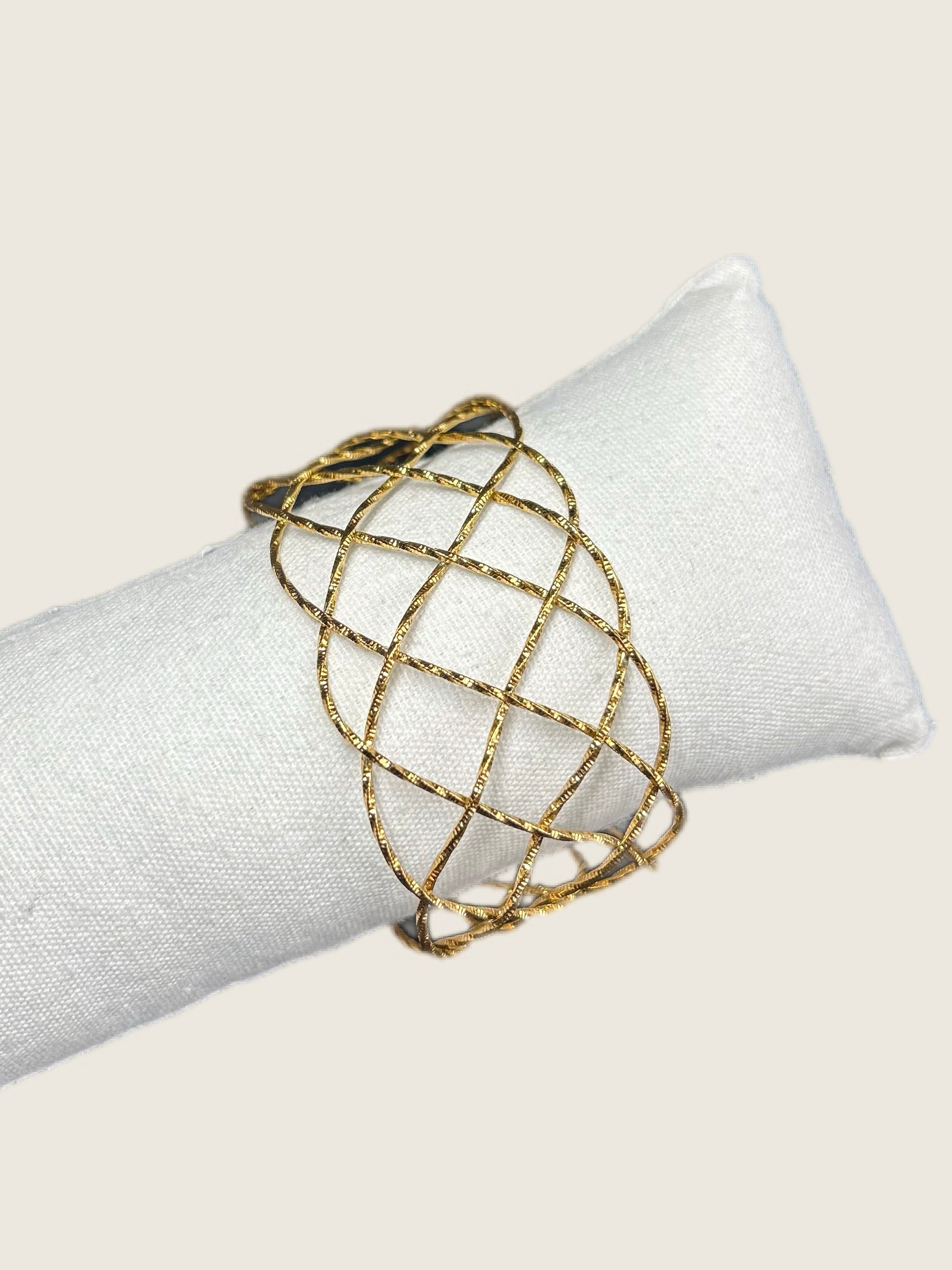 Avec ses entrelacs dorés, elle habille le poignet comme une dentelle de lumière. Audacieuse mais délicate, elle allie force et douceur dans un équilibre parfait. Elle attire l’œil sans jamais écraser, et donne à chaque geste une allure gracieuse.